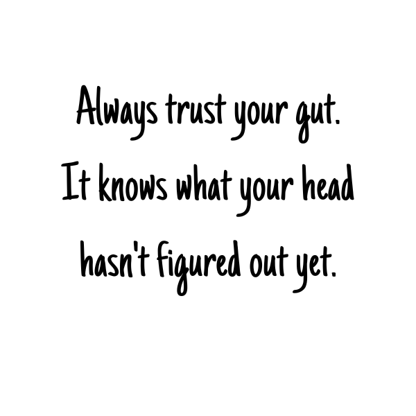 Always trust your gut. It knows what your head hasn’t figured out
