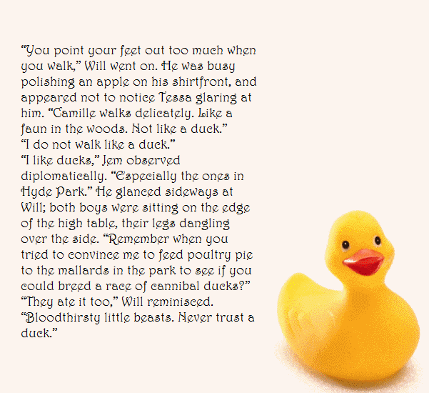 Cassandra Clare quote: Never trust a duck” Will Herondale “We